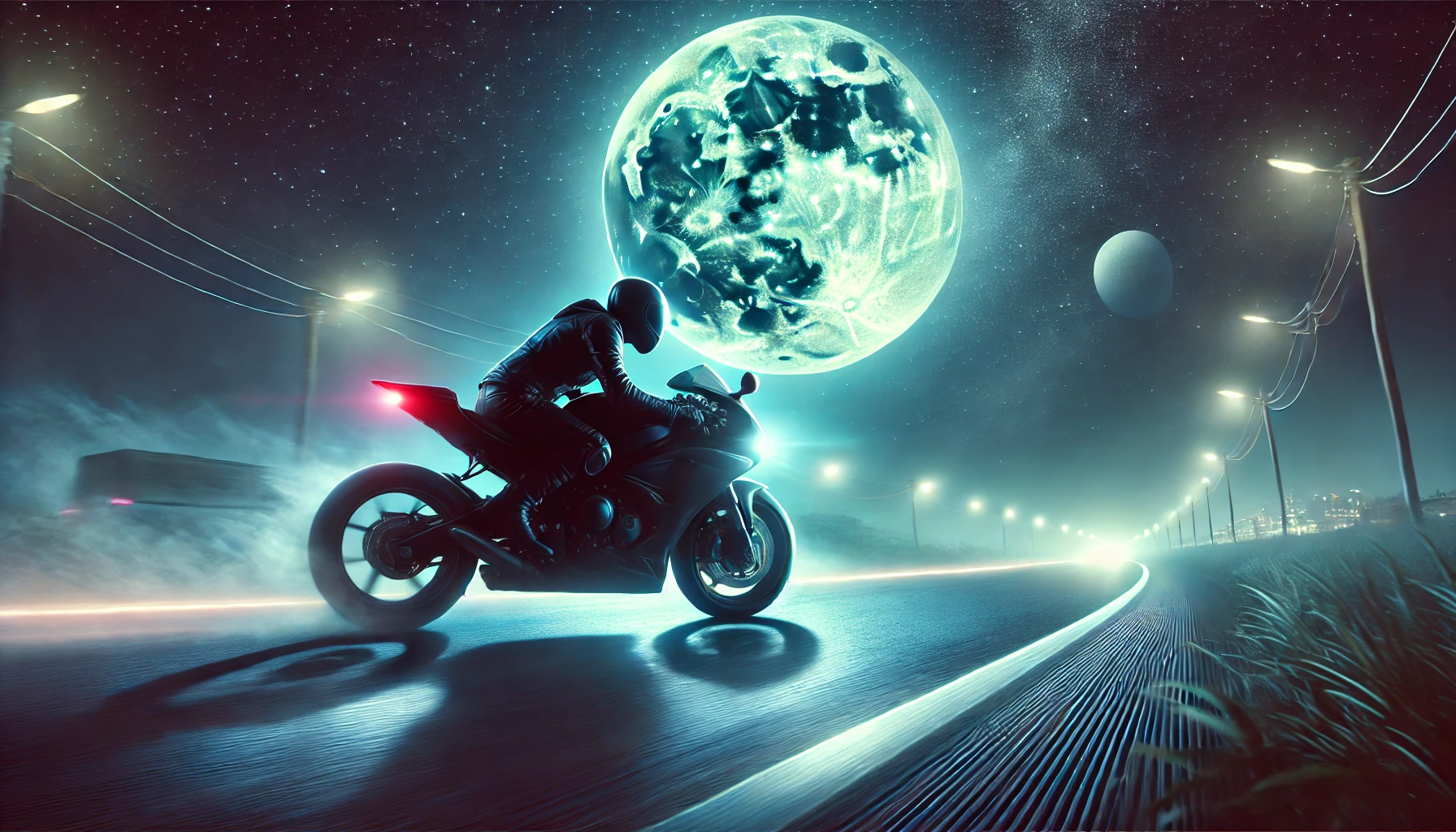 어두운 밤길을 질주하는 오토바이 꿈