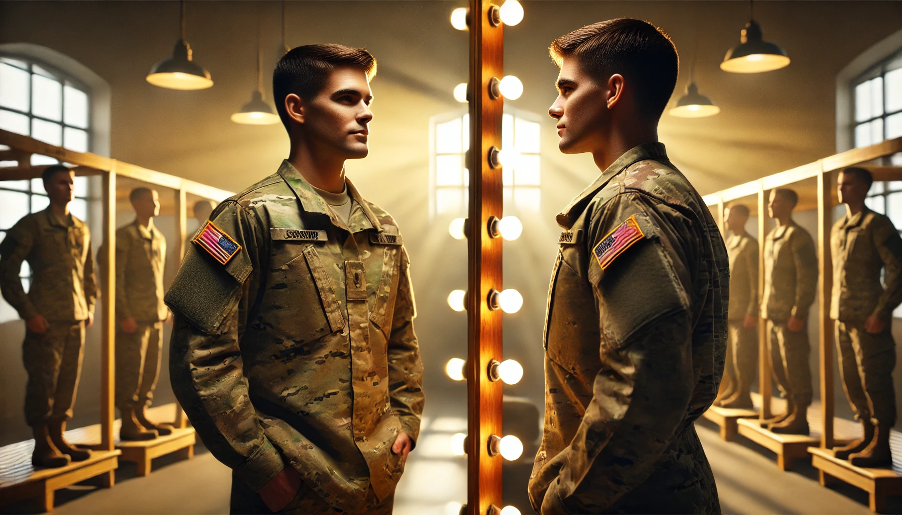 군대가는 꿈에서 가장 뚜렷하게 등장하는 이미지 중 하나가 군복입니다. 꿈속에서 군복을 입고 거울을 보는 장면은 내가 새로운 역할에 적응하고 싶은 욕구, 혹은 의무를 다해야 한다는 책임감을 상징합니다. 거울 속에 비친 내 모습이 어색하거나 보기 싫다면, 현실에서 내게 주어진 과업이나 위치가 불만스럽거나 벅차다고 느끼는 것일 수도 있습니다. 반대로 거울 속 군복 차림이 든든하게 느껴진다면, 내가 특정 책임을 받아들이고 그 과정을 통해 성장하고 싶다는 긍정적인 메시지로 해석할 수 있습니다.
