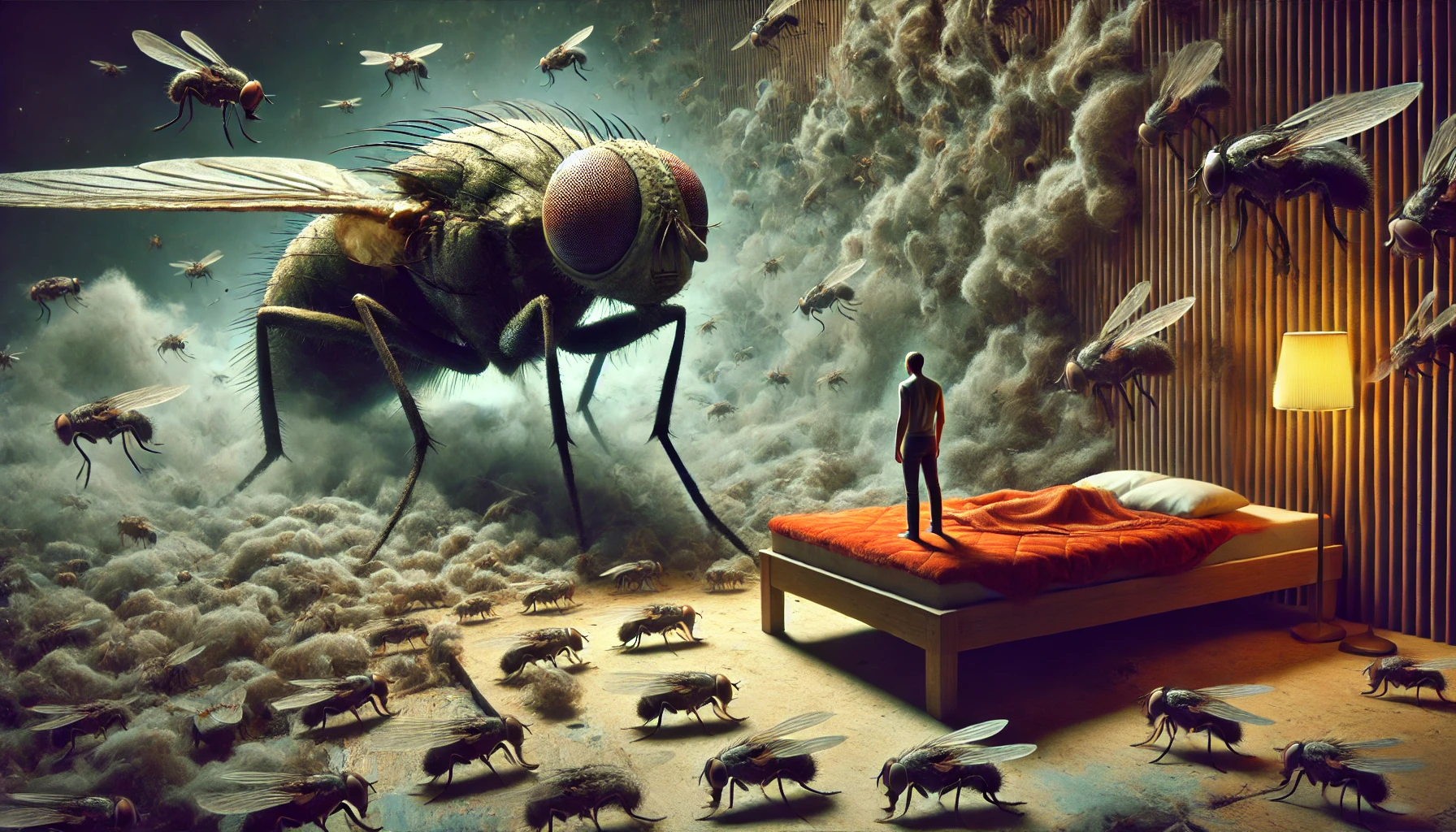 또한 파리 자체는 흔히 청결과는 거리가 멀어 보이는 곤충이기 때문에, 무언가 마음에서 걸리는 일이나 주위 환경에 대한 불만이 쌓였을 때도 이런 꿈을 꾸게 될 가능성이 있습니다. 즉, 대수롭지 않아 보이는 문제라도 내면 깊숙이 영향을 미치고 있을 때 파리가 나타나 경각심을 주거나 해결을 촉구하는 역할을 할 수 있습니다.